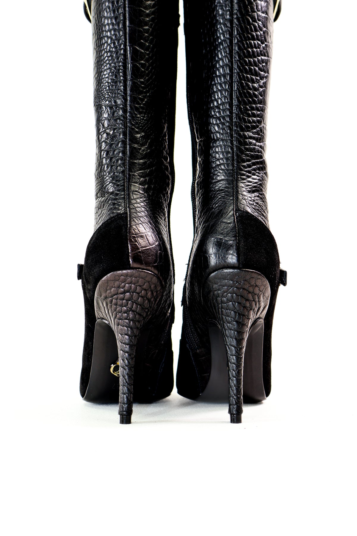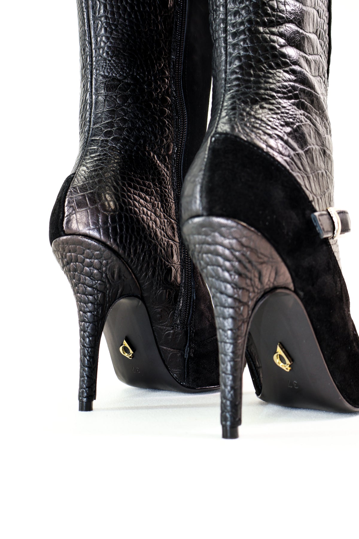 • Topuk: 10,5 cm ince stiletto; içte metal/kompozit destekle yalpalamayı önleyen güvenli duruş. Kroko kaplama topuk bütünsel şıklığı tamamlar.
