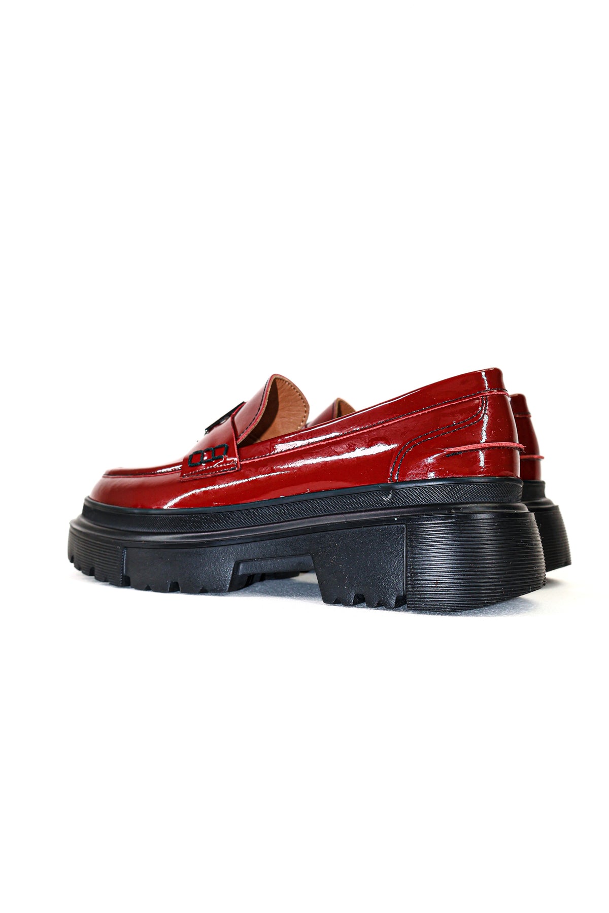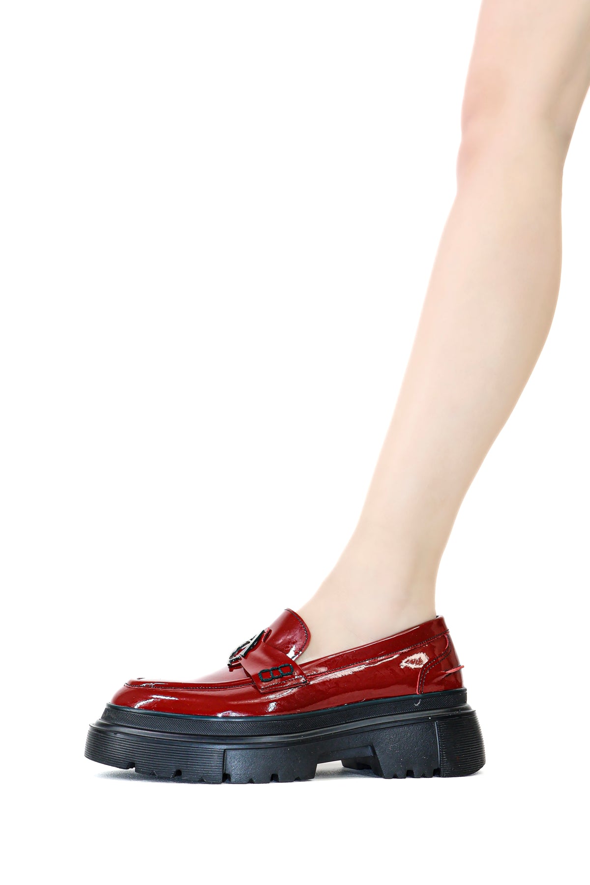 Kalın siyah taban, kaymaz yüzeyiyle sessiz ve dengeli adımlar sağlarken, kırmızı lakeli gövdeyi çerçeveleyerek tasarımın gücünü vurgular.