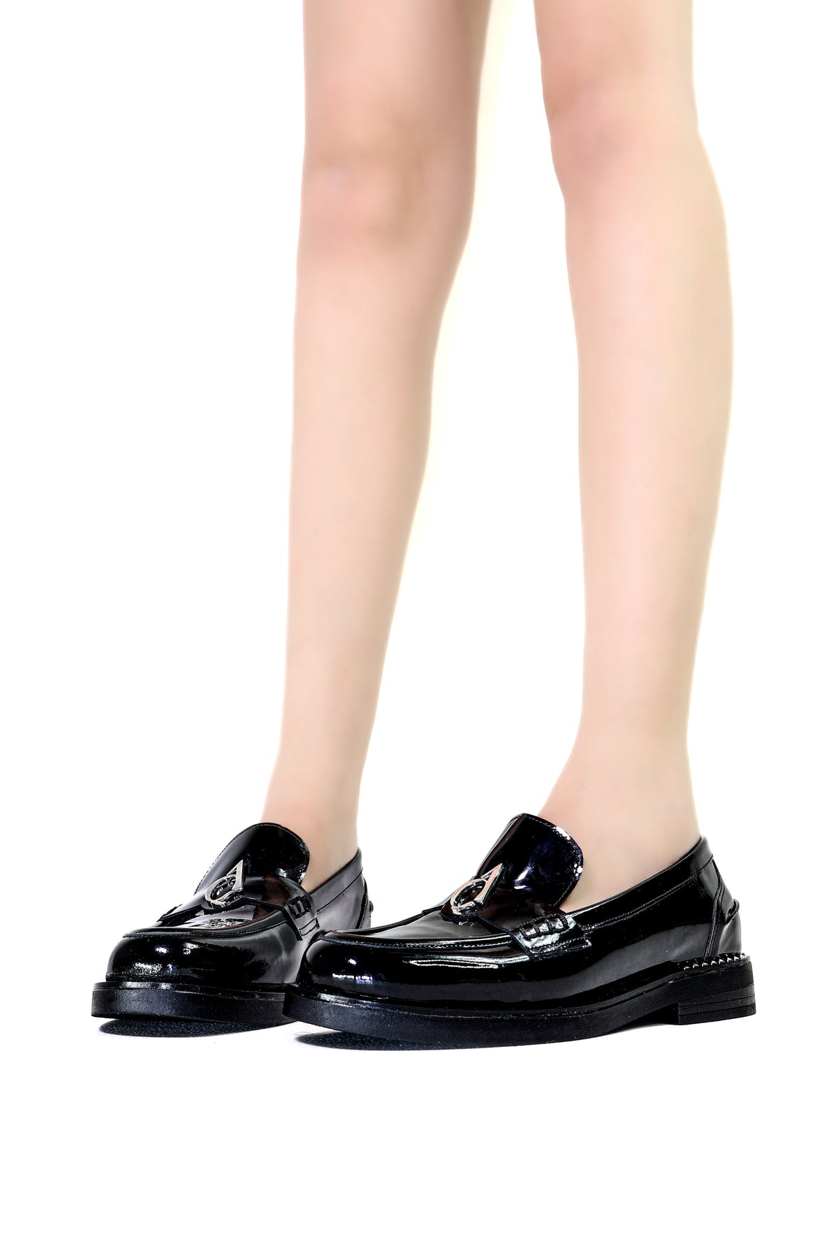 Kalın tabanı ve parlak yüzeyiyle hem ofis hem davet stilinde “effortless elegance” etkisi yaratır.