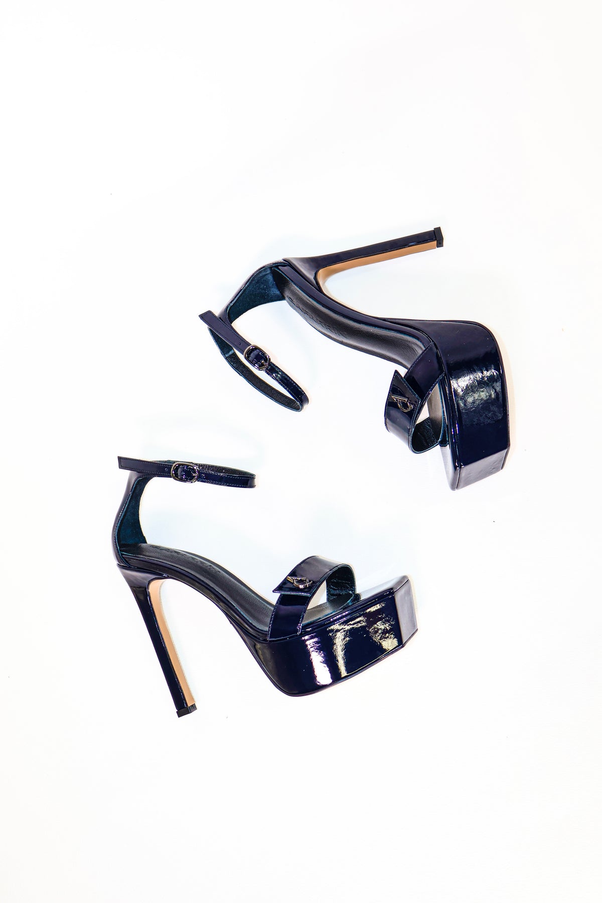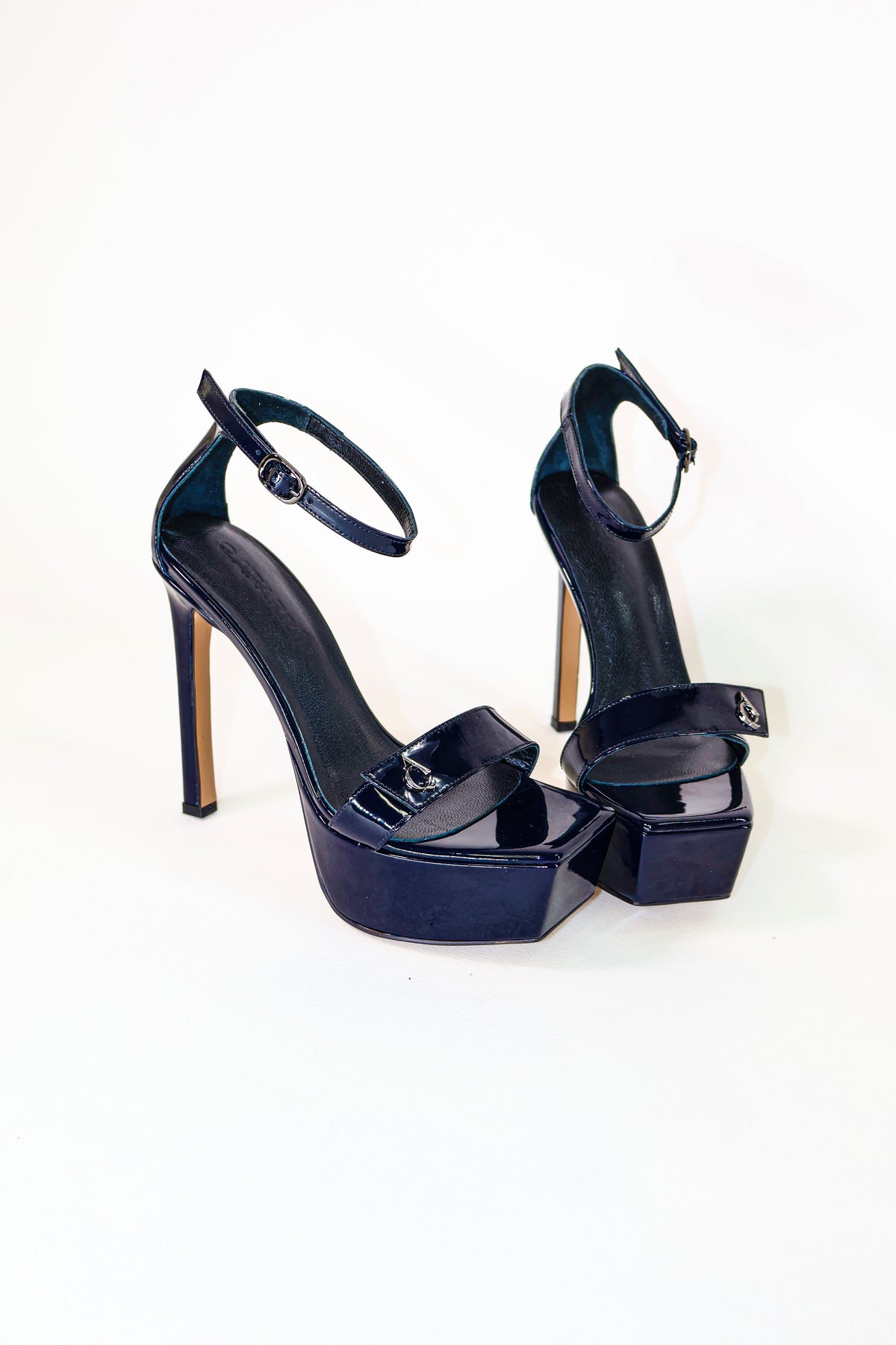 NÉVYRA PLATFORM ANKLE STRAP, iddialı 14 cm topuk yüksekliğini 4 cm ön platform dengesiyle buluşturarak dramatik bir siluet yaratır; yürüyüşü ise kontrollü ve dengeli tutar.